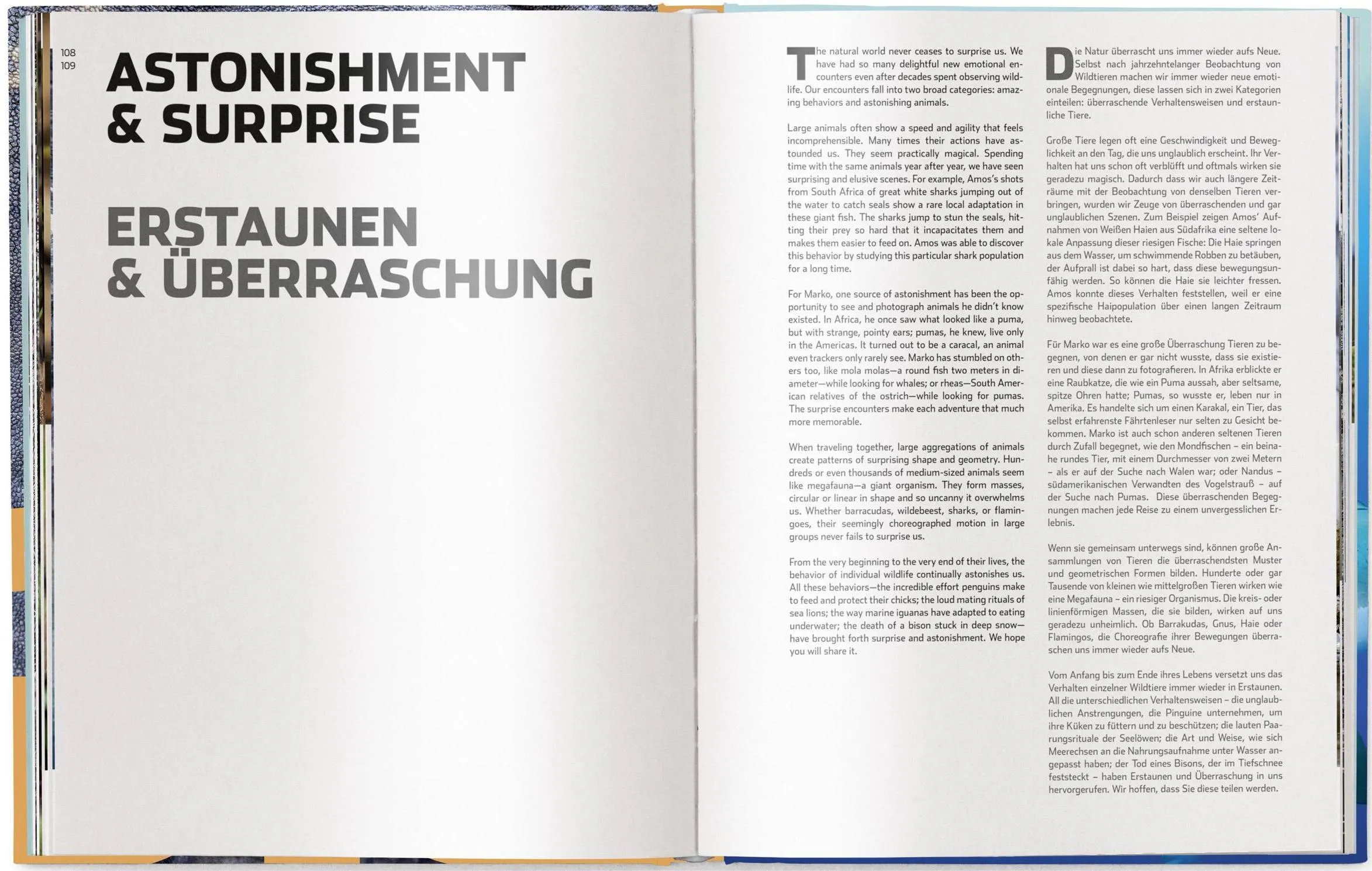 In addition to the captivating photography, BIG is so unique since it is crafted through the emotions that the photographer felt during his encounters. Marko allow the viewer to feel the awe, inspiration, fear and fascination that he felt with each animal encounter; he share, not just his photography skill, but his emotions while seeing giant grizzly and polar bears, while diving with great white sharks and while observing leopards, seals, bison and more.